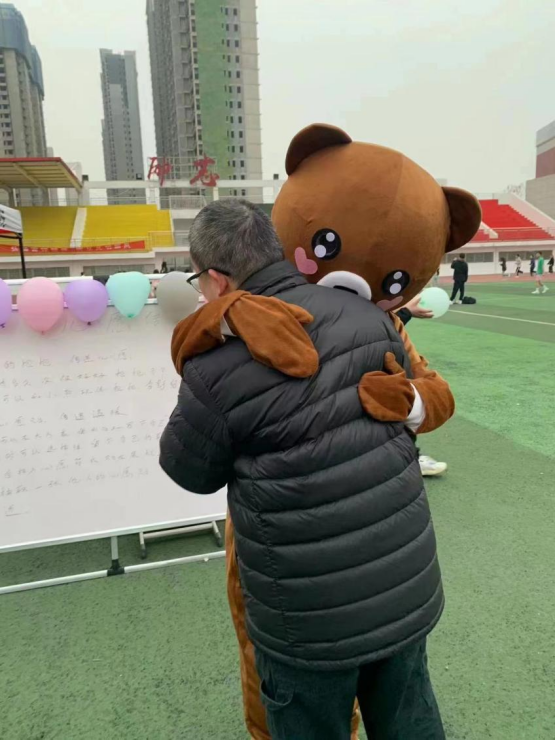 活动中同学穿上可爱的玩偶服和小可爱们进行拥抱,倾听大家生活中的坎坷和不如意,释放同学们内心紧张、消极的负面情绪,从而放松身心,激起对生活的热情。同时,活动现场也吸引了很多老师们主动加入学生队伍,与玩偶们拥抱、合影留念。场面其乐融融却又感人至深。