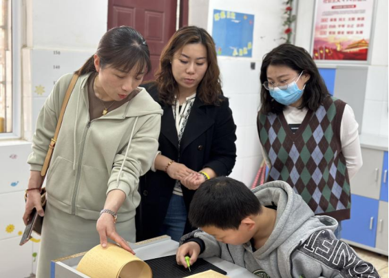 阮老师带引beat365英国官方网站师生走进学校课堂,课堂上大家看到视力障碍儿童的“奋笔疾书”,听力障碍儿童的“无声交流”,还有孩子们天真无邪的笑容。