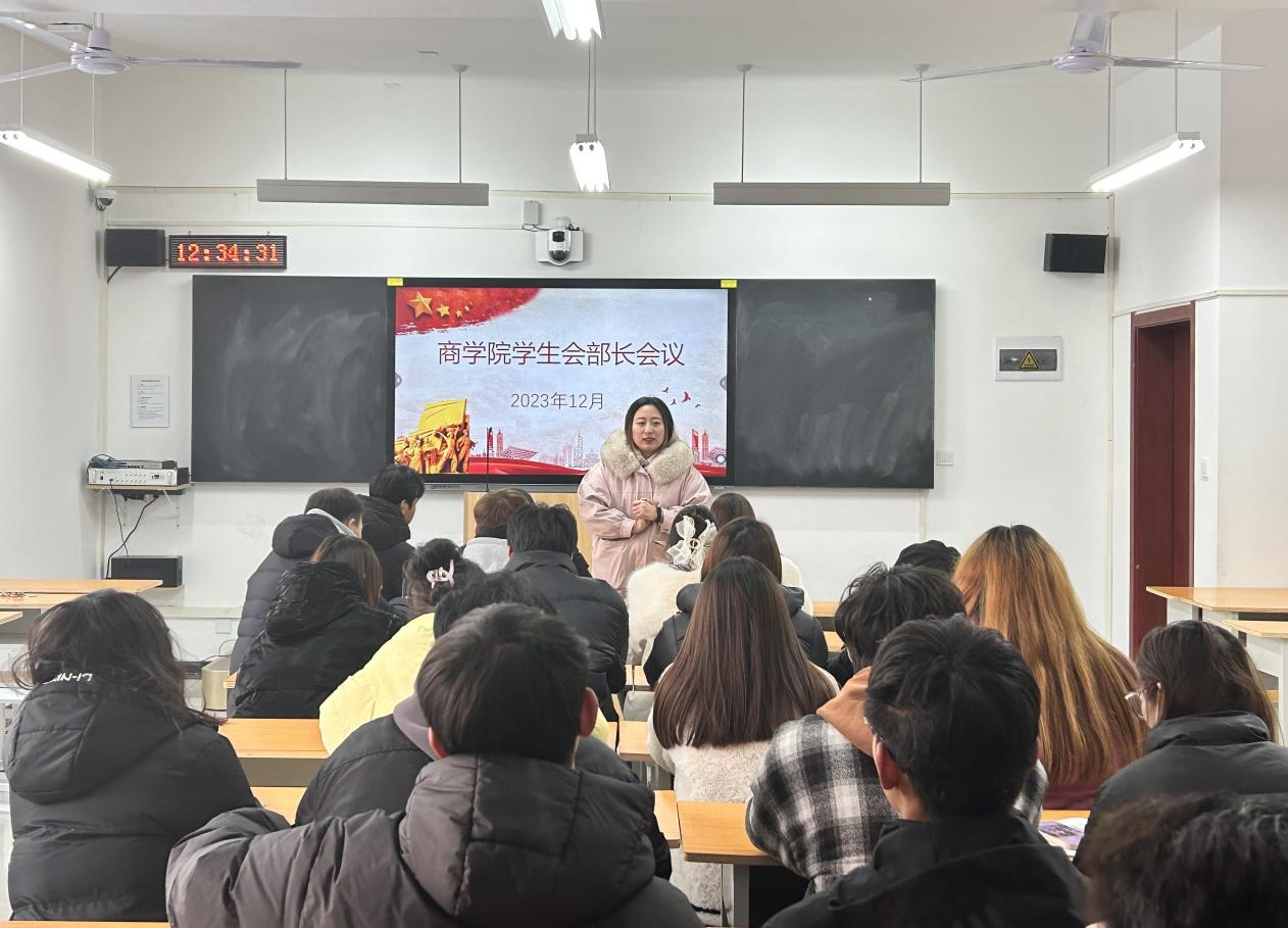 为进一步提高学生会各部门工作的主动性,提升学生干部的工作积极性,充分发挥学生会示范引领作用,12月19日中午,beat365英国官方网站于教学楼B203教室组织召开学生干部例会。本次会议由学院团总支书记贺苗苗主持,学院学生会全体学生干部参会。