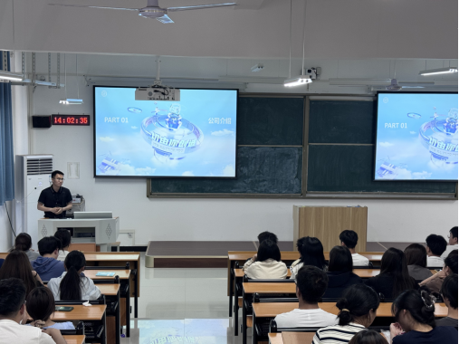 企业负责人通过视频展示和PPT讲解等方式向在场学生全面展示了企业的发展历程、企业文化和岗位需求,随后针对学生提出的薪资待遇、岗位晋升等问题进行解答。