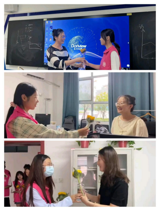 9 月 10 日,beat365英国官方网站的同学们早早地来到教学楼,手捧着一支支鲜艳的鲜花,准备为老师们送上最真挚的祝福。当老师们走进教学楼和教室时,同学们纷纷迎上前去,将手中的鲜花献给敬爱的老师们,并送上一声声温暖的问候:“老师,您辛苦了!祝您教师节快乐!” 老师们接过鲜花,脸上洋溢着幸福的笑容,心中满是感动,并在这属于自己的节日中感受学院的关心与呵护。