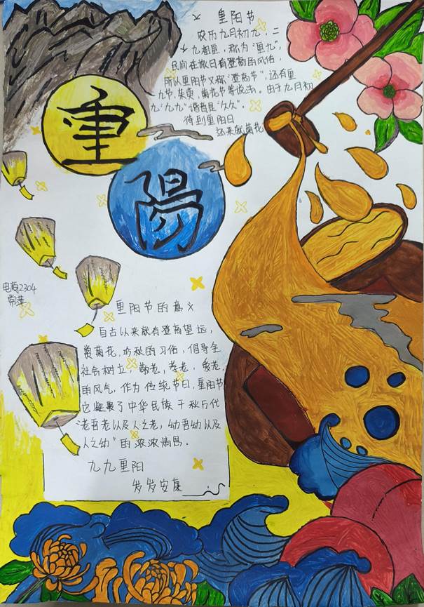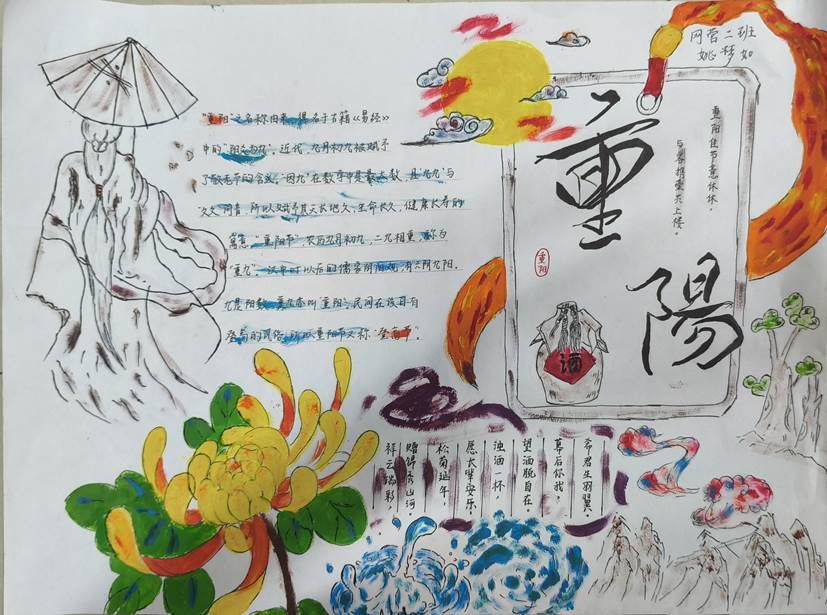 活动中,同学们纷纷发挥自己的创意和才华,以重阳节为主题,精心设计和制作了内容丰富、形式多样的手抄报。在创作过程中,同学们不仅加深了对重阳节文化的了解,也锻炼了自己的设计能力和艺术修养。