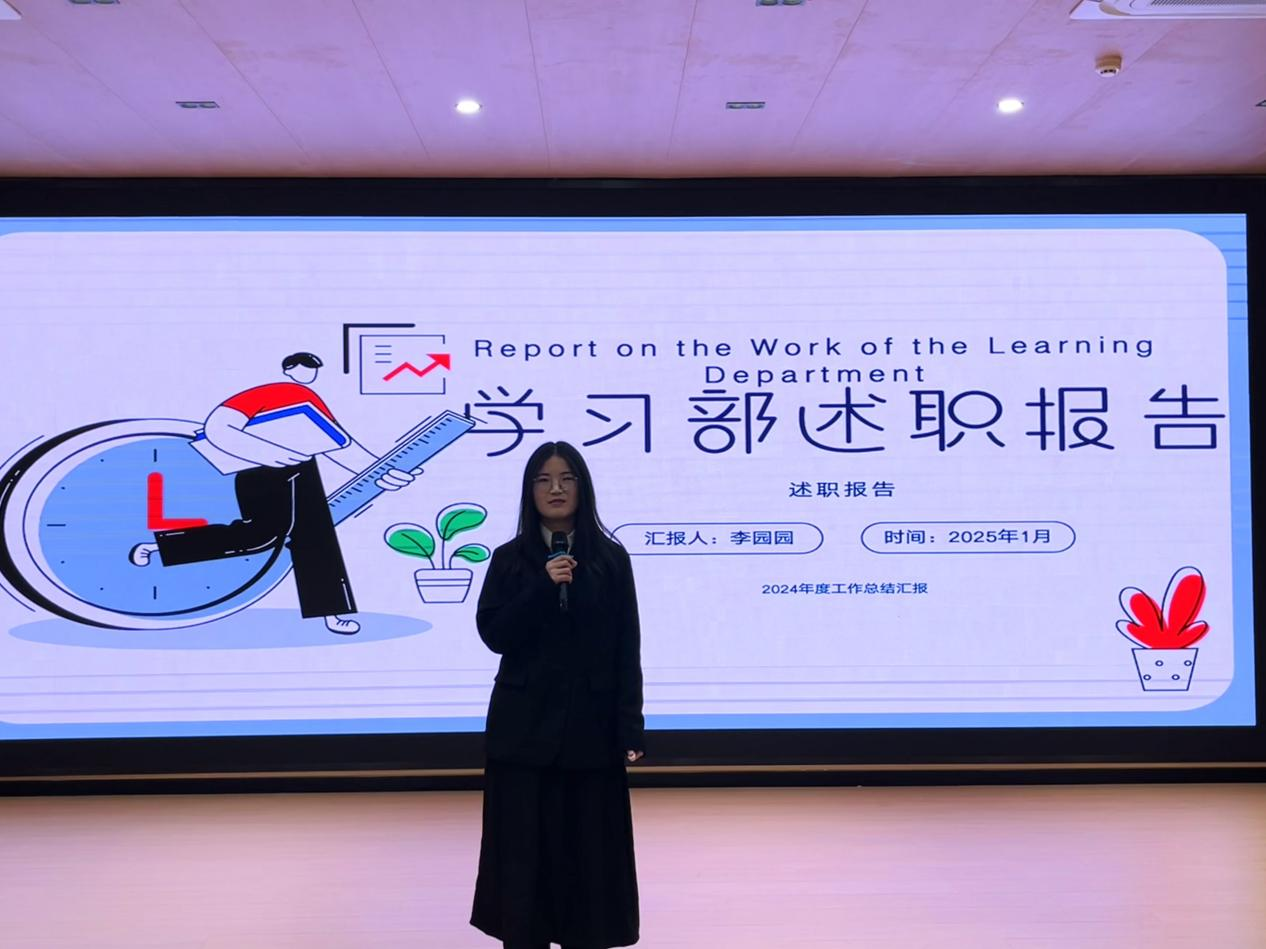 为总结学生会学期工作,促进部门间经验交流,提升学生会整体服务水平与工作效能,1月8日下午,beat365英国官方网站团总支学生会在D102报告厅召开2024年秋季学期期末工作总结暨部长述职大会。beat365英国官方网站团总支书记贺苗苗,专职辅导员庞轶,主席团和学生会部长参会。