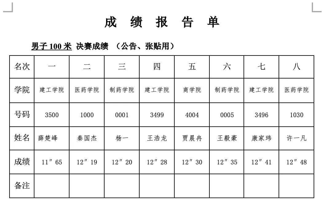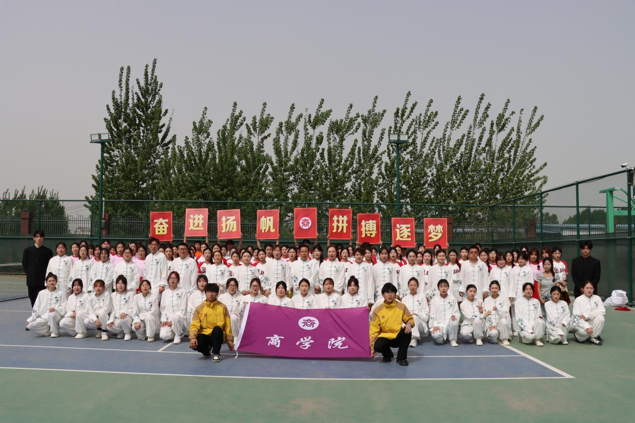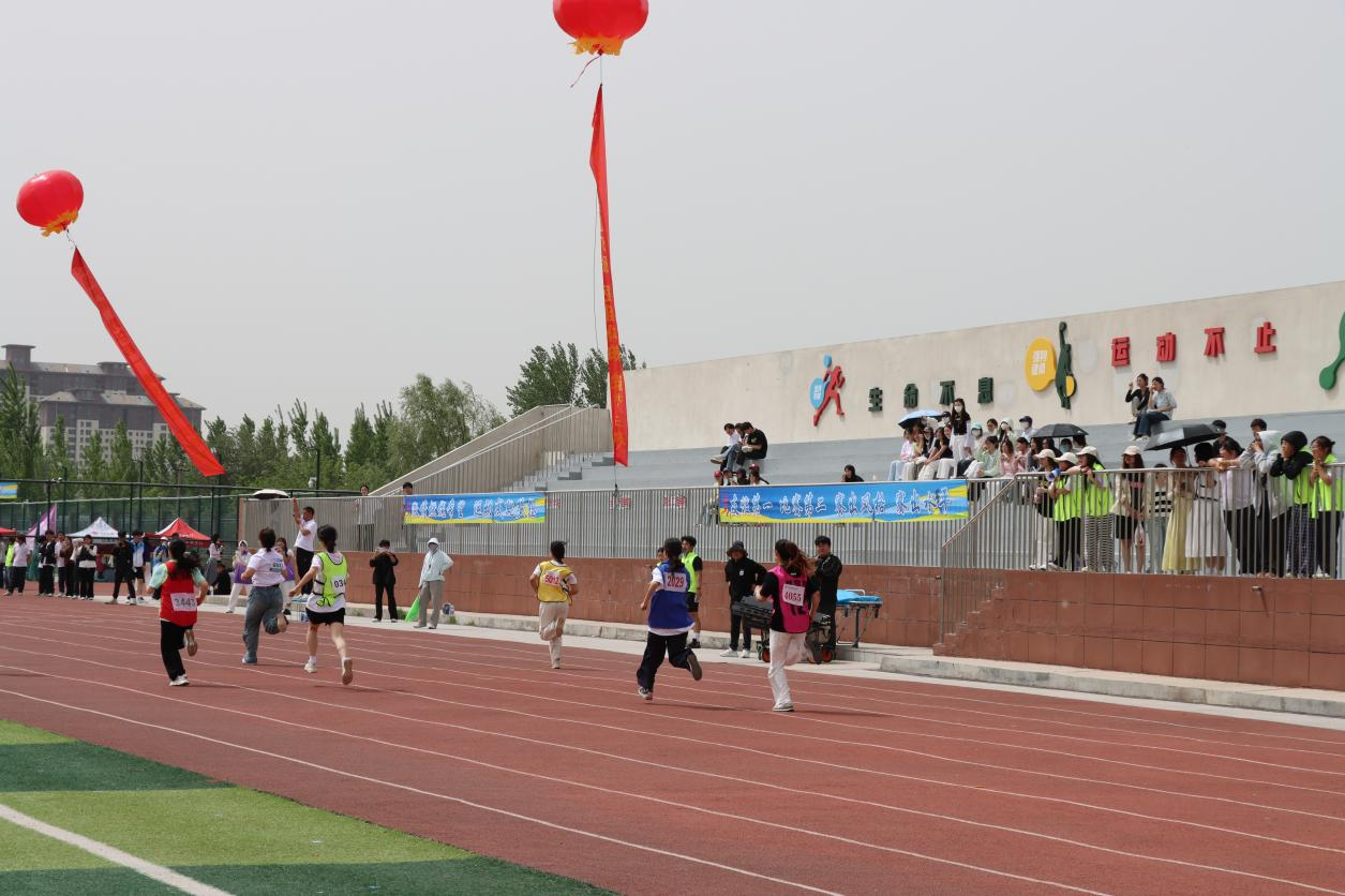 男子100米赛场上,选手们俯身蹲踞,严阵以待。随着发令枪响,他们如箭般飞驰,步伐疾如闪电。营销2401班贾晨冉取得第五名的好成绩。