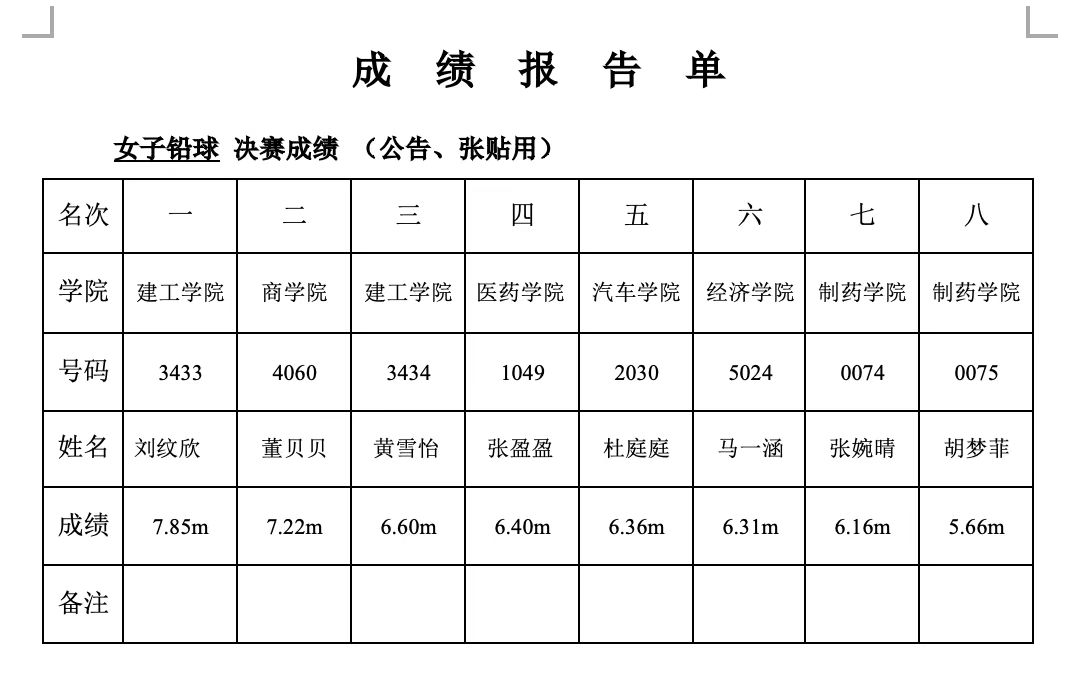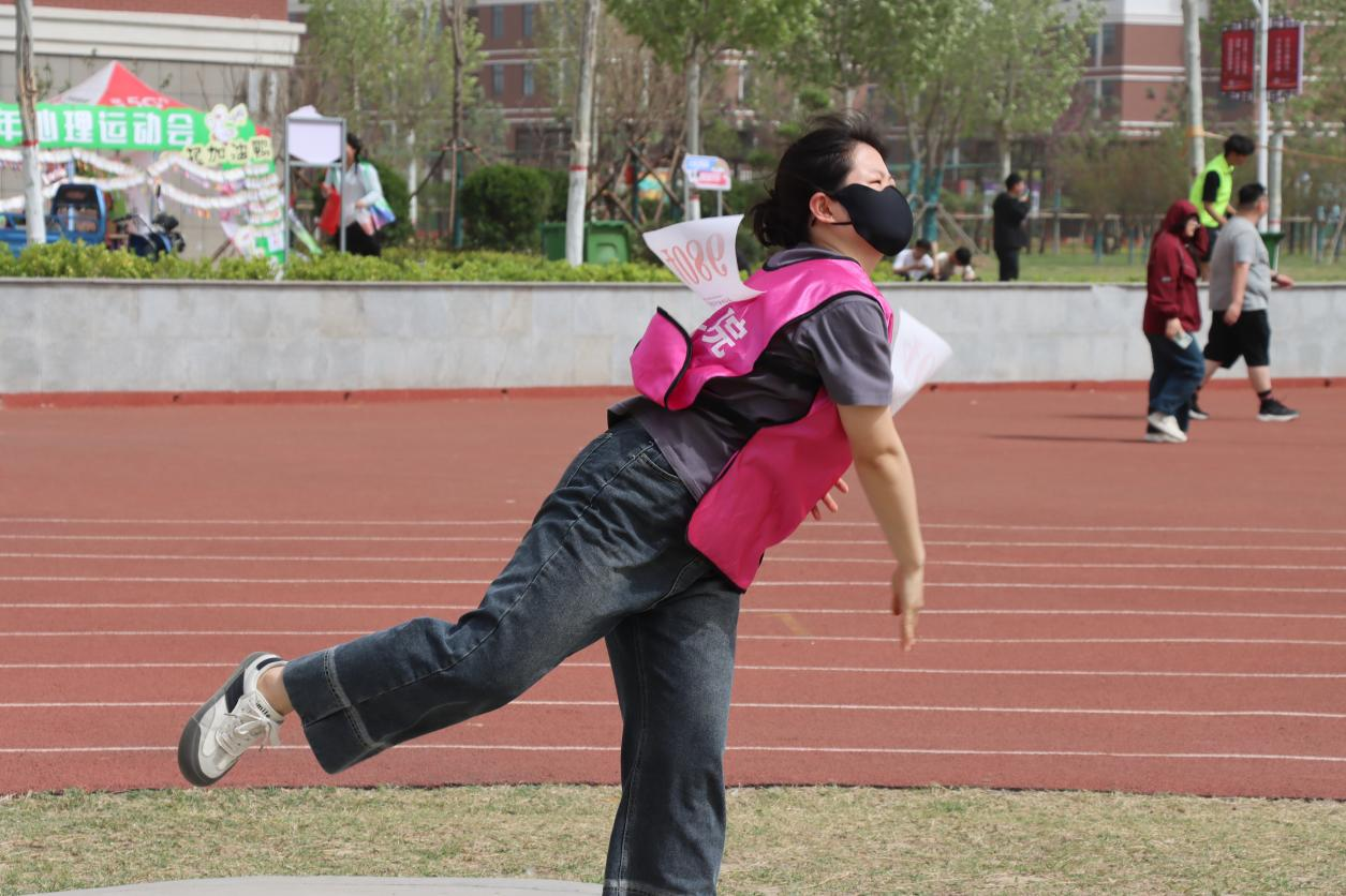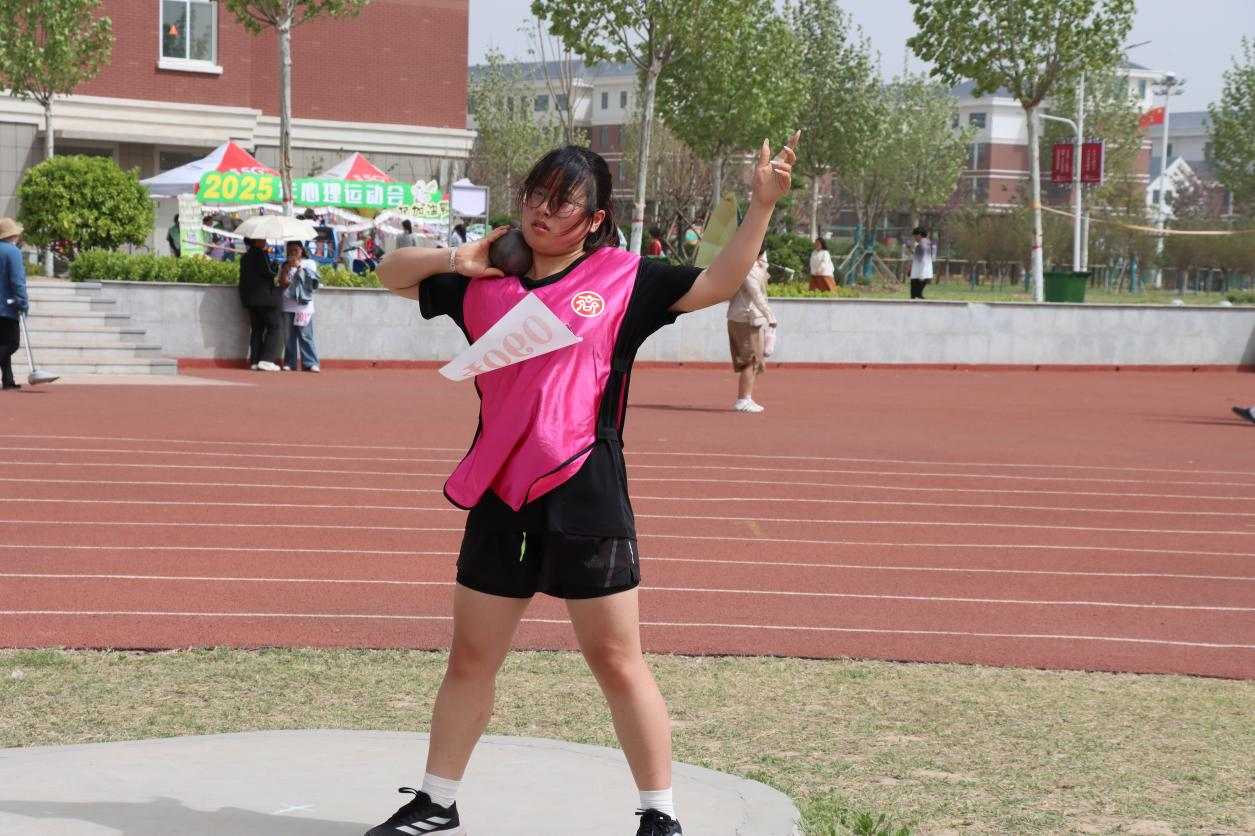 女子铅球比赛,选手们后仰蓄力,大喊发力,铅球在空中飞驰。力量与技巧的比拼扣人心弦,最后网营2401班董贝贝取得第二名的好成绩。