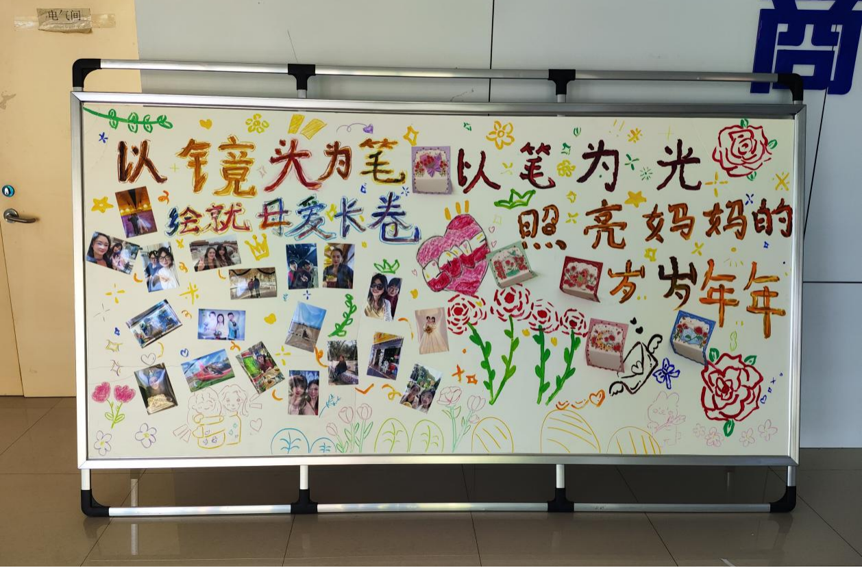 展板上陈列的贺卡,以笔为媒介,这些蕴含着深情的贺卡或质朴或精致,却同样炽热。当微风轻抚展板,贺卡的边缘轻轻翻动,宛如无数未言之语“妈妈,我爱您”在低语共鸣。这些凝固于纸张的柔情,终将转化为生活中具体的拥抱与问候,让感恩之情从展板上的文字,演变为日常生活中流淌的温馨。