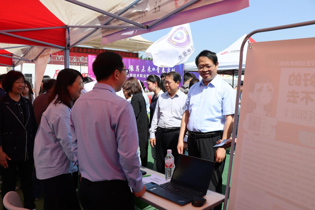 校党委书记闫俊山,副书记魏新华,副校长常新中深入双选会现场,详细调研了解行业人才需求趋势和用人单位岗位需求。他们与招聘单位代表及毕业生亲切交流,鼓励毕业生要志存高远、脚踏实地,紧密结合国家发展需要与自身能力素质,认清就业形势,发挥专业优势,把握就业机会,迎接未来挑战。同时,校领导还与部分企业负责人深入沟通,探讨校企合作新模式,为毕业生开拓更多就业渠道。