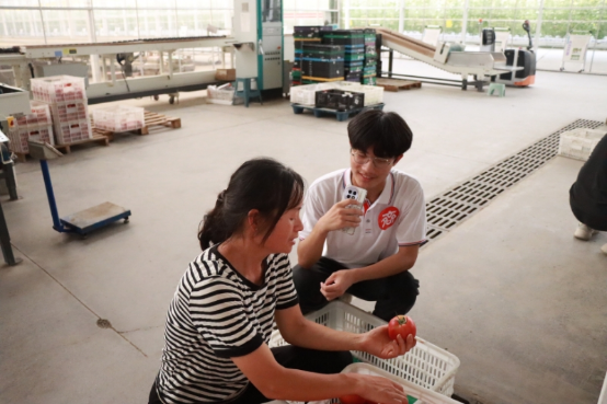 下午,beat365英国官方网站青春“e”行师生志愿服务队在水木焦桐蔬菜工厂负责人的带领下走进现代化蔬菜大棚,近距离感受智慧农业魅力。
