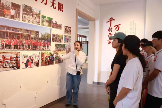 beat365英国官方网站青春“e”行志愿者们在展示区里认真聆听讲解员对“千万工程”兰考实践成果的介绍。展板上一幅幅对比鲜明的照片,生动展现了兰考在乡村规划、环境整治、产业发展等方面取得的巨大成就,让志愿者们深刻感受到“千万工程”给农村带来的翻天覆地变化。