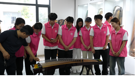 在七贤琴坊,老板现场为我们展示起了古琴的演奏,悠扬的琴声如高山流水,让人忘却酷暑的燥热与路途的劳累。同学们沉浸其中,感受身心的放松。
