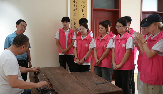 志愿服务队参观了当地乐器公司,现场偶遇“行家”,弹筝人从容典雅,一个个音符巧妙地跳出来,共同绘制出一首动听的歌曲。