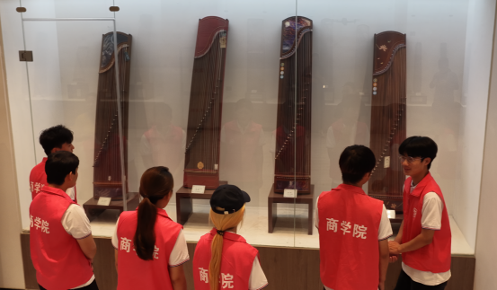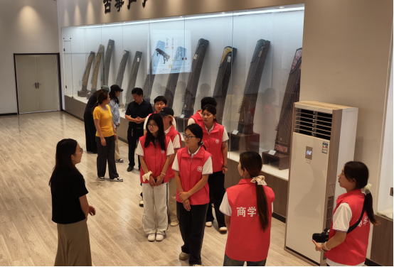 活动当天,志愿服务队来到民族乐器展览馆,讲解员带领大家参观展厅,详细介绍传统乐器结构与2500余年发展历史,讲述厅内各式古筝的前世今生,还有传统乐器与兰考的不解之缘。