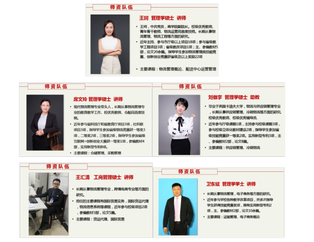 现代物流管理专业有专业课教师6名,其中,讲师5人,硕士研究4人,是一支年轻、充满活力与创新精神的团队。