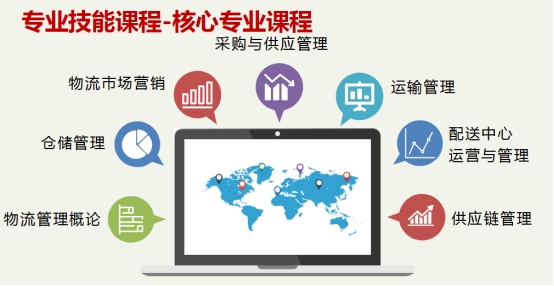 具有物流管理概论、仓储管理、运输管理、采购与供应管理、供应链管理、配送中心运营管理、国际货代、物流市场营销等专业核心课程,以及管理学、物流设施设备认知、物流信息系统操作、储配方案设计、商品包装实务、快递操作实务、国际货代、物流经济学、物流企业法规、中国商贸文化、商务礼仪、电子商务概论、冷链物流等一般专业课程。
