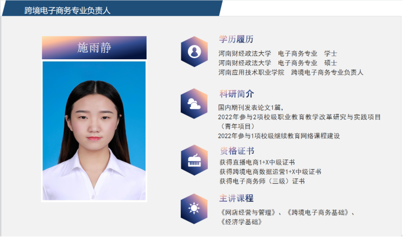 该专业培养理想信念坚定、德技并修、全面发展,具有诚信守法、协作创新、开放包容等素质,掌握互联网技术、电子商务、国际贸易等知识,具备跨境电子商务网站(网店)的规划、销售等综合能力,能够从事跨境电商视觉营销、平台数据分析及运营、网络客服等工作的高素质技术技能人才。