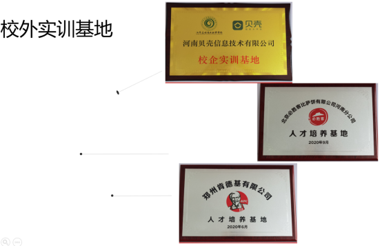此外,我院与正大集团、京东物流、郑州肯德基、丹尼斯、郑州希尔信息技术有限公司、郑州九六—电子商务有限公司、郑州明美化妆品有限公司等多家企业开展校企合作。