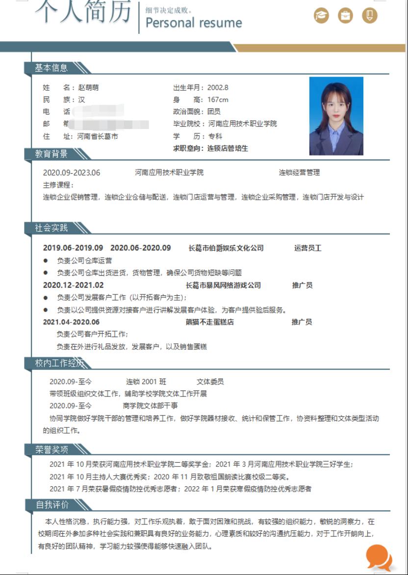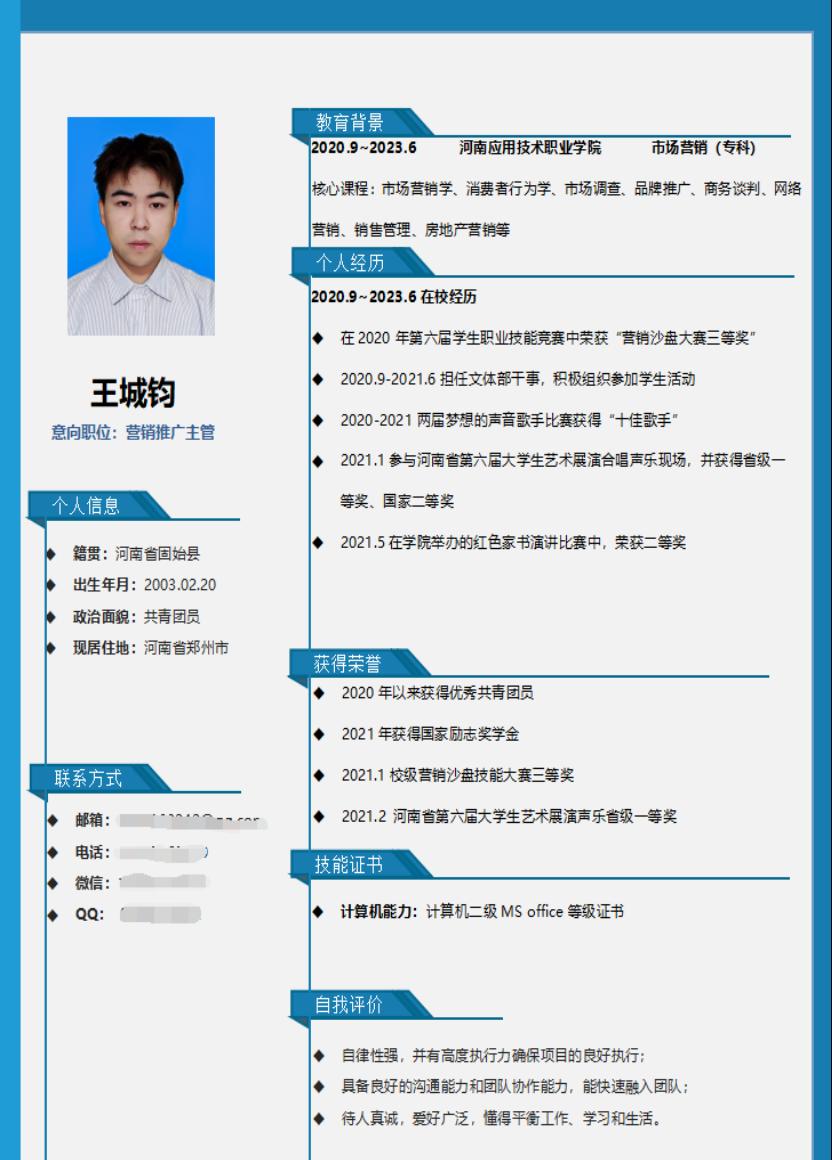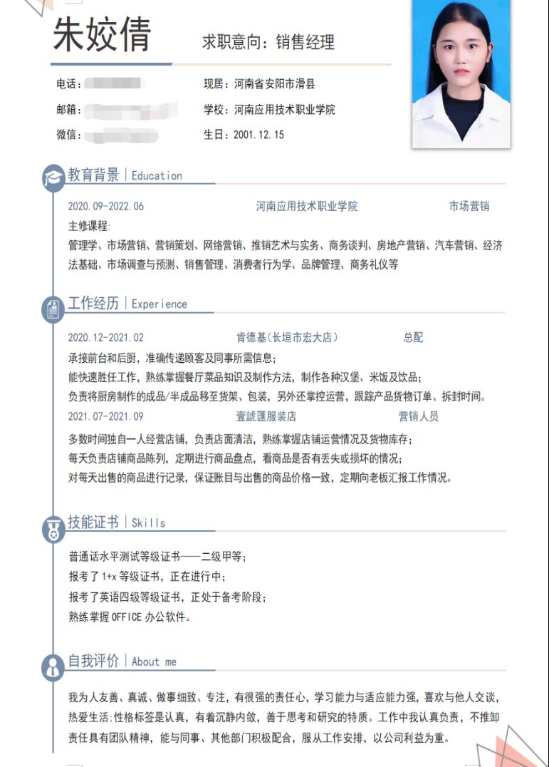 简历是展示自我的一块求职“敲门砖”,为帮助beat365英国官方网站20级学生增强就业意识,充分做好就业准备,制作出优秀的简历并能在求职过程中成为自身的“重要法宝”。beat365英国官方网站开展了第五届简历设计制作大赛,beat365英国官方网站20级全体学生参与了简历制作。下面我们来共同欣赏20级求职小可爱们的优秀简历吧!