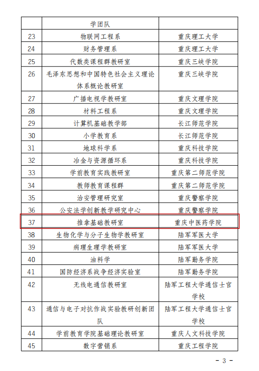 附件 重庆市教育委员会关于公布2023年市级优秀基层教学组织典型案例评选结果的通知