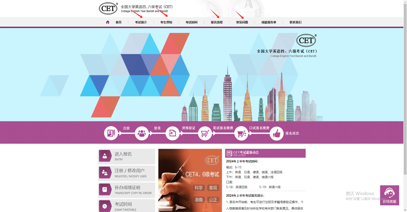2.CET-4达到425分的学生才能报考CET-6,考生不能同时报考CET-4和CET-6;
