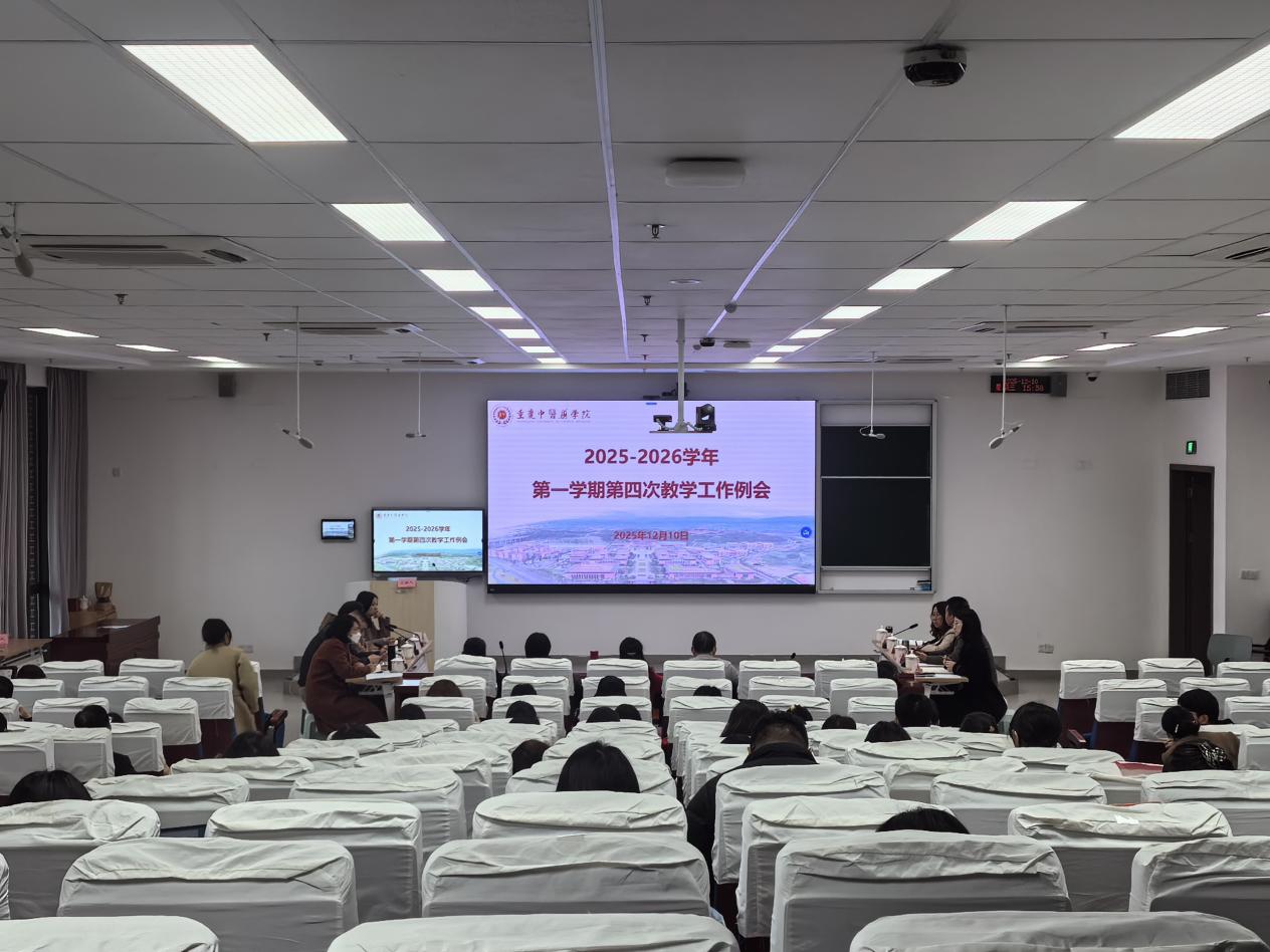 为系统总结阶段教学工作成效,强化教学质量监控与考核规范,部署下一阶段核心教学任务,学校于2025年12月10日组织召开2025—2026学年第一学期第四次教学工作例会。