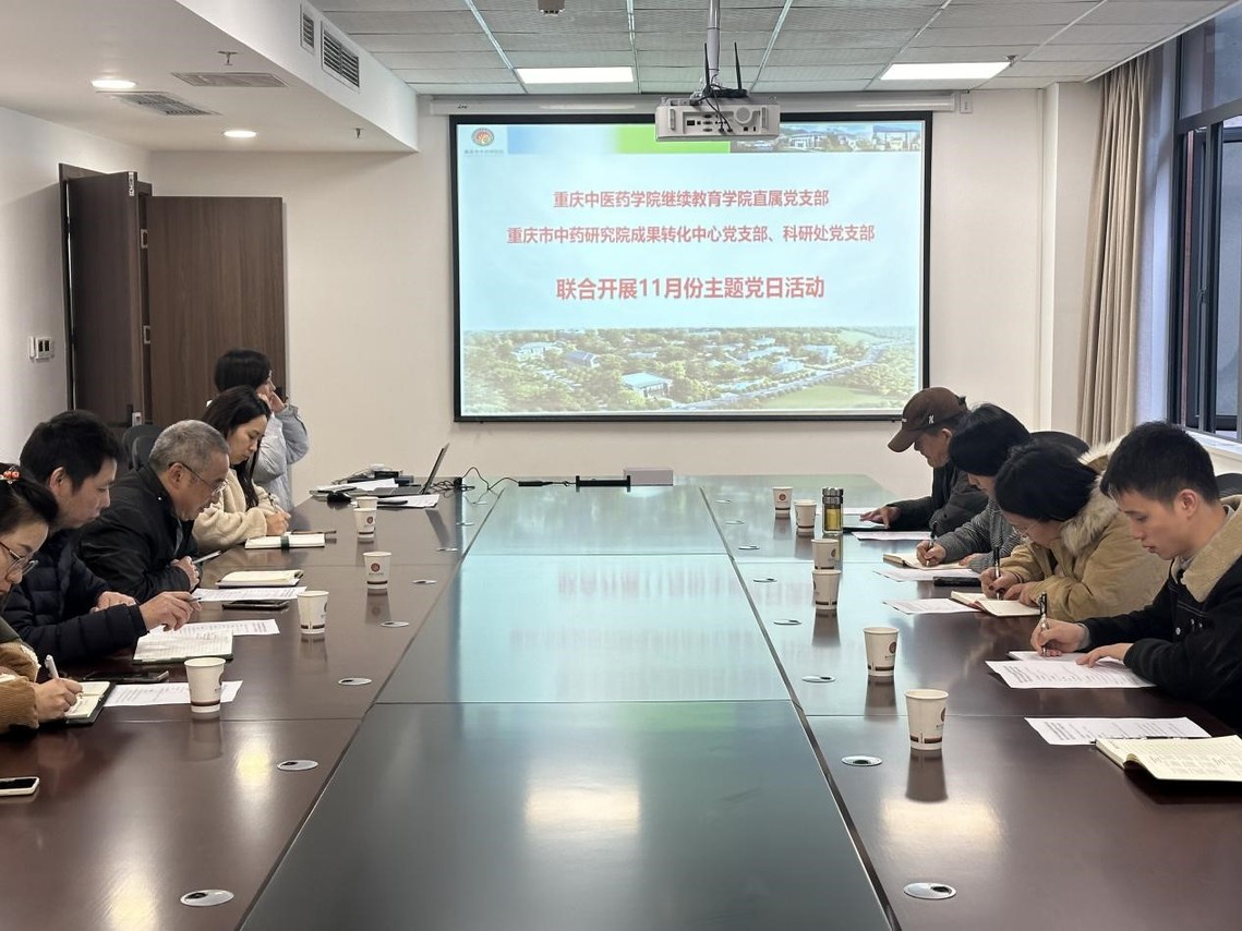 2024年11月25日下午,为深化思想政治教育,激发党员干部“以学促干”的热情与动力,bat365中文官方网站继续教育学院直属党支部联合重庆市中药研究院成果转化中心党支部及科研党支部,在重庆市中药研究院培训中心开展了以“学深悟透强党性,以学促干谋发展”为主题的党日活动。