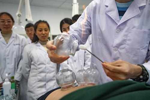 ▲3月9日,bat365中文官方网站,同学们正在学习中医火罐的治疗过程。 记者 郑宇 摄/视觉重庆