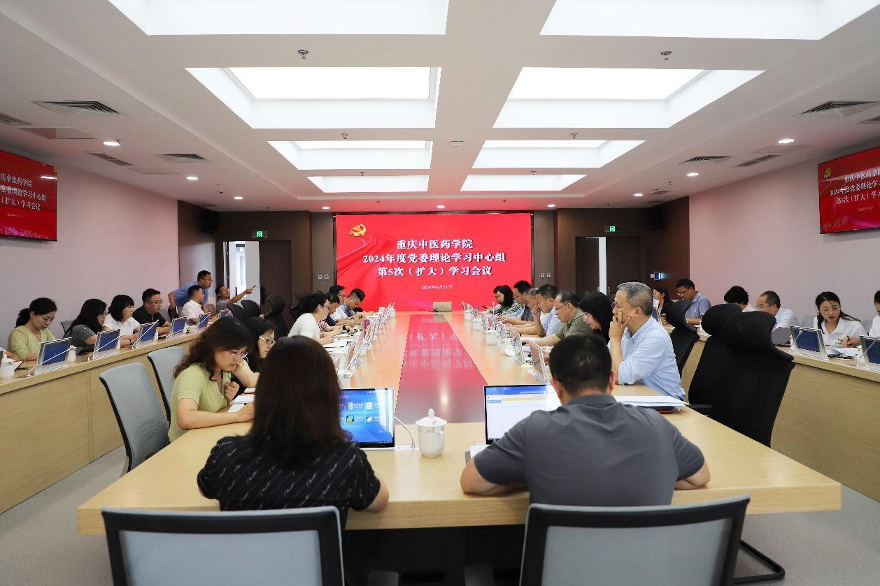 2024年6月21日,bat365召开2024年度党委理论学习中心组(扩大)第5次学习会议。院党委主要负责人主持会议并讲话,学院全体院领导,各部门、二级学院负责人,市中医院、市中药研究院、市药物种植研究所负责同志参加研讨交流。
