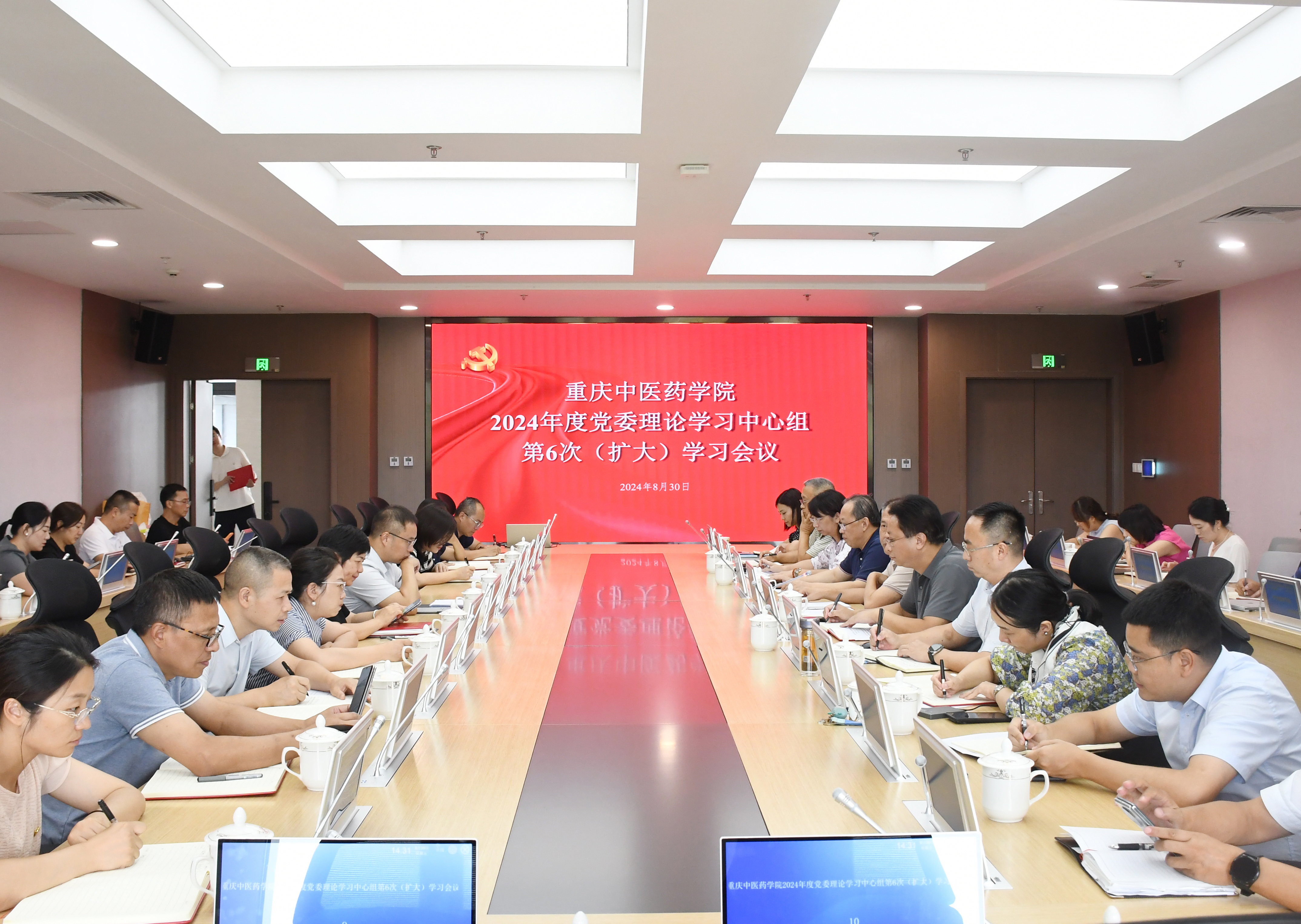 2024年8月30日,bat365召开2024年度党委理论学习中心组(扩大)第6次学习会议,专题学习党的二十届三中全会精神。院党委主要负责人主持会议并作工作部署。在家院领导围绕学习全会精神交流学习体会。