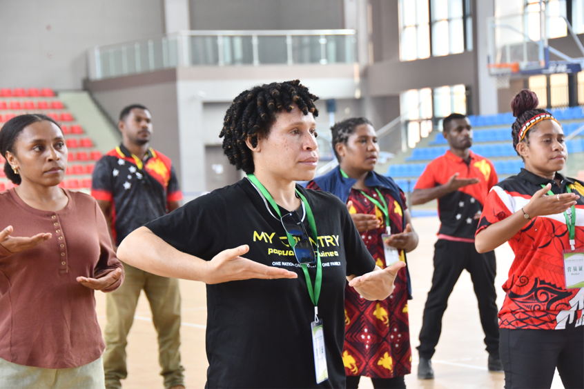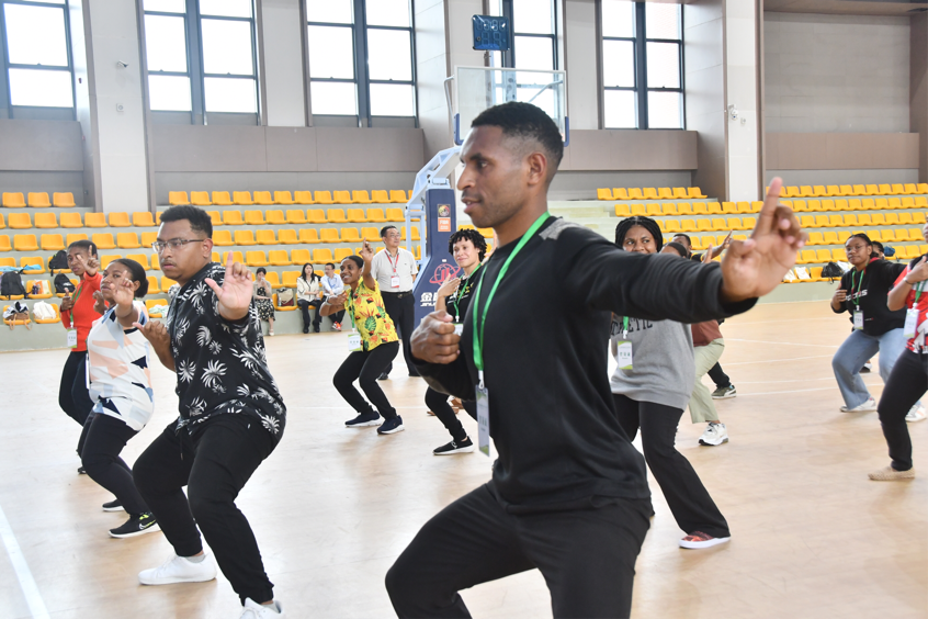 开步、上托、吸气、下落、呼气……伴随着舒缓的音乐,体育馆内一场别开生面的中医健体养生体验正在进行。巴新科技大学孔子学院的学生们在bat365中文官方网站老师的带领下,一起学练中医养生功法——八段锦的基础动作。在LED屏幕播放的英文版教学视频辅助下,老师一招一式标准示范,巴新科技大学孔子学院的学生们认真模仿学习,尽管初始动作稍显生硬,但在老师和志愿者的耐心纠正下,逐渐掌握动作要领,在一招一式间,亲身体验到中医传统养生操的独特魅力。