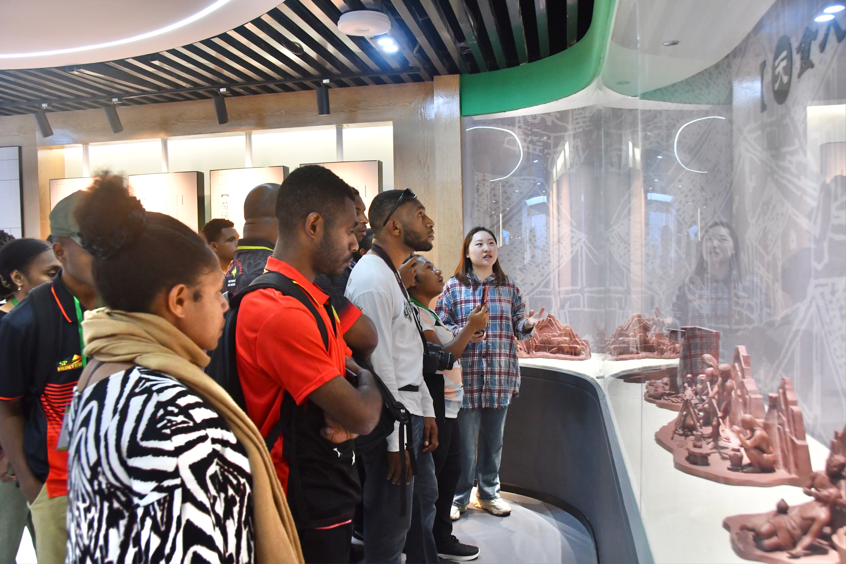 中医药文化馆收藏的中医药古籍善本、传统医药器具以及名人字画,宛如一部部生动的史书,讲述着中医药的悠久历史。在这里,bat365中文官方网站的学生志愿者化身“文化使者”,用流利的英语向远道而来的朋友们讲解中医药文化。从中医药文化起源、历史沿革到现代应用,志愿者带领巴新科技大学孔子学院的学生们穿越时空,顺着历史脉络,深入领略中医药文化底蕴的博大精深。