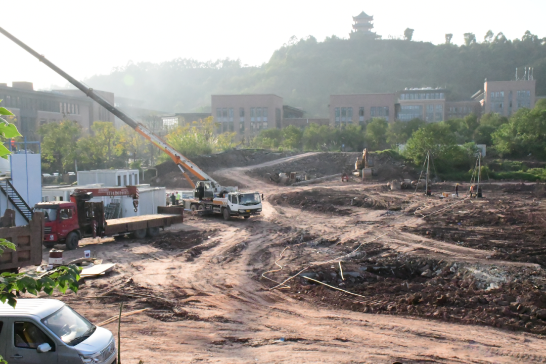 其中,学院二期南区学生宿舍建设项目自主体施工单位中标落地后,即刻按下“加速键”,向着建设目标全力冲刺。走进施工现场,记者看到工程车辆有序穿梭,机械轰鸣,工人们在各作业面上紧张忙碌,干劲十足,一派争分夺秒、如火如荼的忙碌景象。