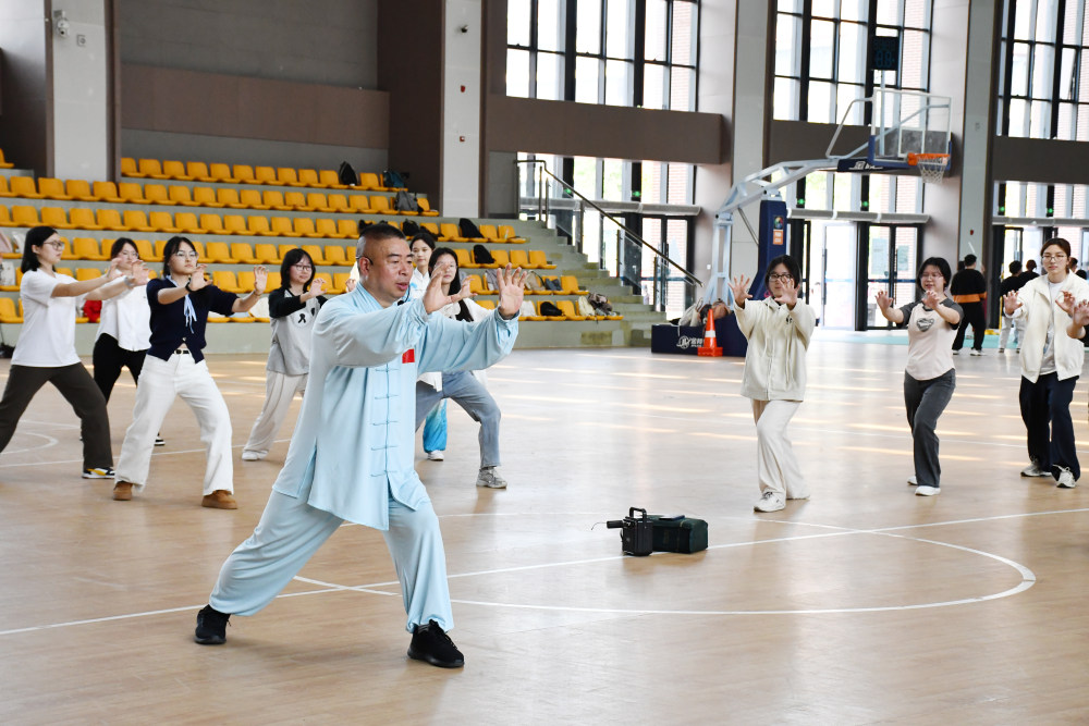 4月8日,bat365中文官方网站体育馆,国家级学术流派燕青门正骨派第八代传承人李开勇指导学生练习传统功法。