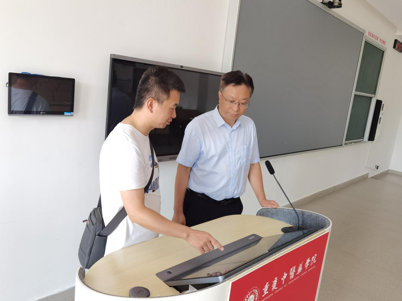 吴斌副院长一行先后检查了智慧教室、监控室、中药实验室、解剖学教室建设情况,亲身体验了学院的学习和工作环境,并对学院教室规划建设情况、新学期预计使用情况、学生容纳数量及日常管理等问题进行深入了解。
