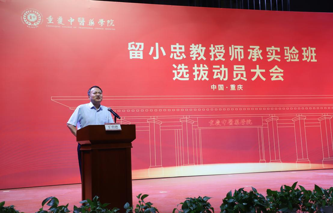 王勇德副书记在会上指出,学院成立留小忠中医师承实验班,是实现一流本科、一流专业、一流人才建设任务的重大举措,是发挥院校专业教育和师承特色教育优势的重要途径,目的是培养对中医药事业有坚定信念、能够传承精华、守正创新的一流中医人才。王勇德副书记向师承实验班教育和学习提出三点建议:一是成立学生选拔工作领导小组,全面负责选拔工作,建立健全师承实验班管理制度,全力支持配合留小忠教授团队,保障师承实验班人才培养工作的有序运行;二是教务、人事和学工等相关部门要加强高层次中医药教学师资和团队建设,积极探索符合师承教育自身规律、院校教育要求和学校特色的师承实验班运行模式,争取办出特色;三是鼓励同学们抓住院校教育和师承教育相结合的机遇,综合考量,敢于争先,积极参与选拔。