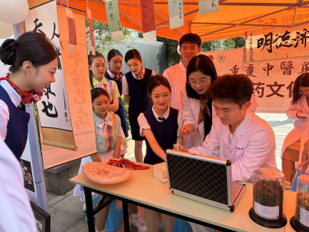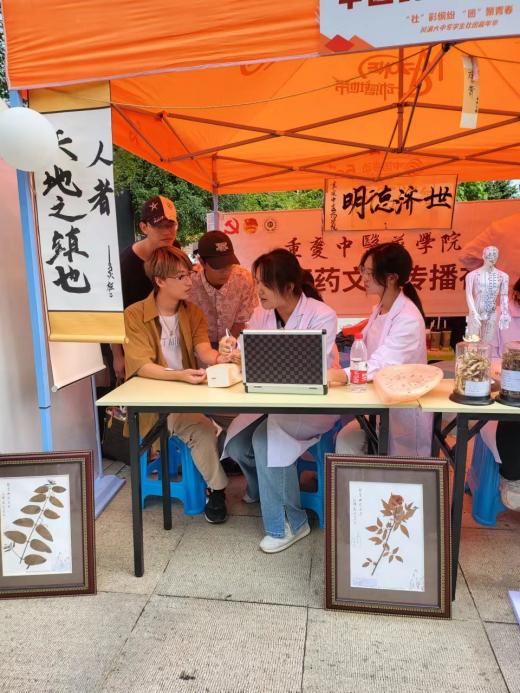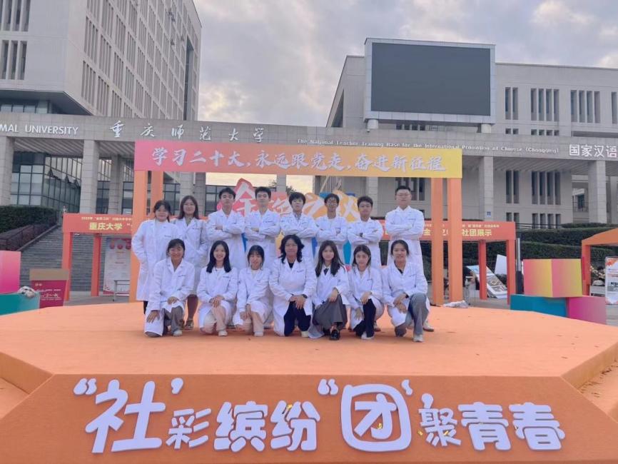 10月15日,2023年“金色之秋”川渝大中专学生社团文化节开幕式暨“‘社’彩缤纷‘团’聚青春”社团嘉年华在重庆师范大学举行,bat365中医药文化传播社作为“社龄”最小的一支志愿公益类社团参加了本次活动,受到了活动现场广大同学的热烈欢迎,成功“出圈”。