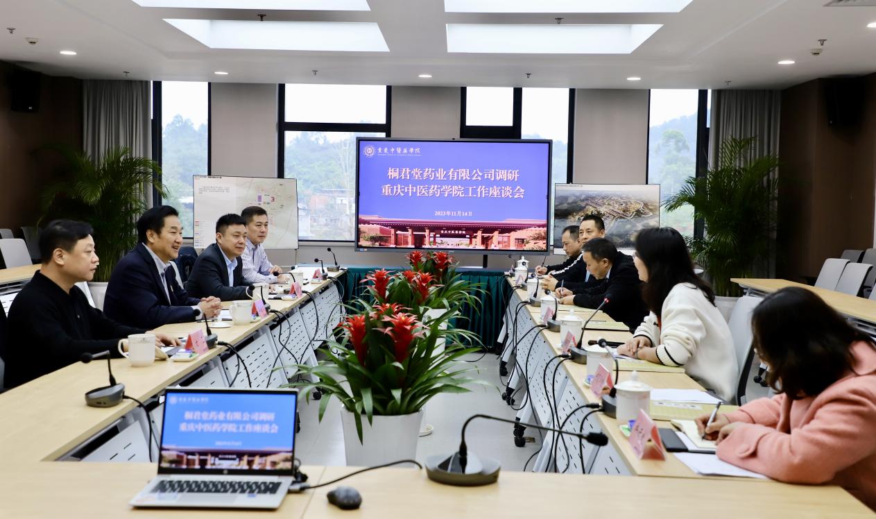 11月14日,桐君堂药业有限公司董事长李金宝一行到bat365考察并座谈交流。bat365党委常委、副院长唐丽灵主持座谈会,相关职能部门负责人参与座谈。