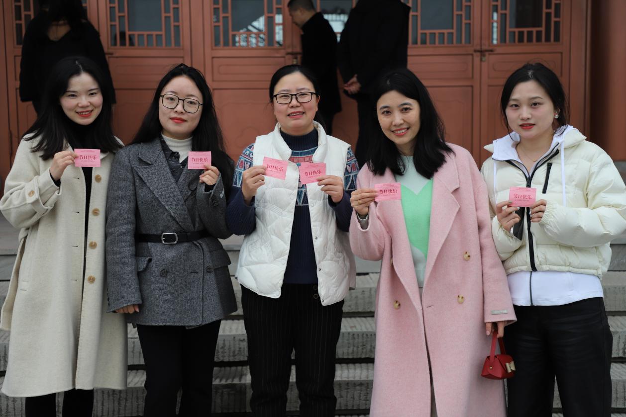 男同学们“突袭”送上节日祝福的鲜花,给女老师们送去了甜蜜的惊喜。