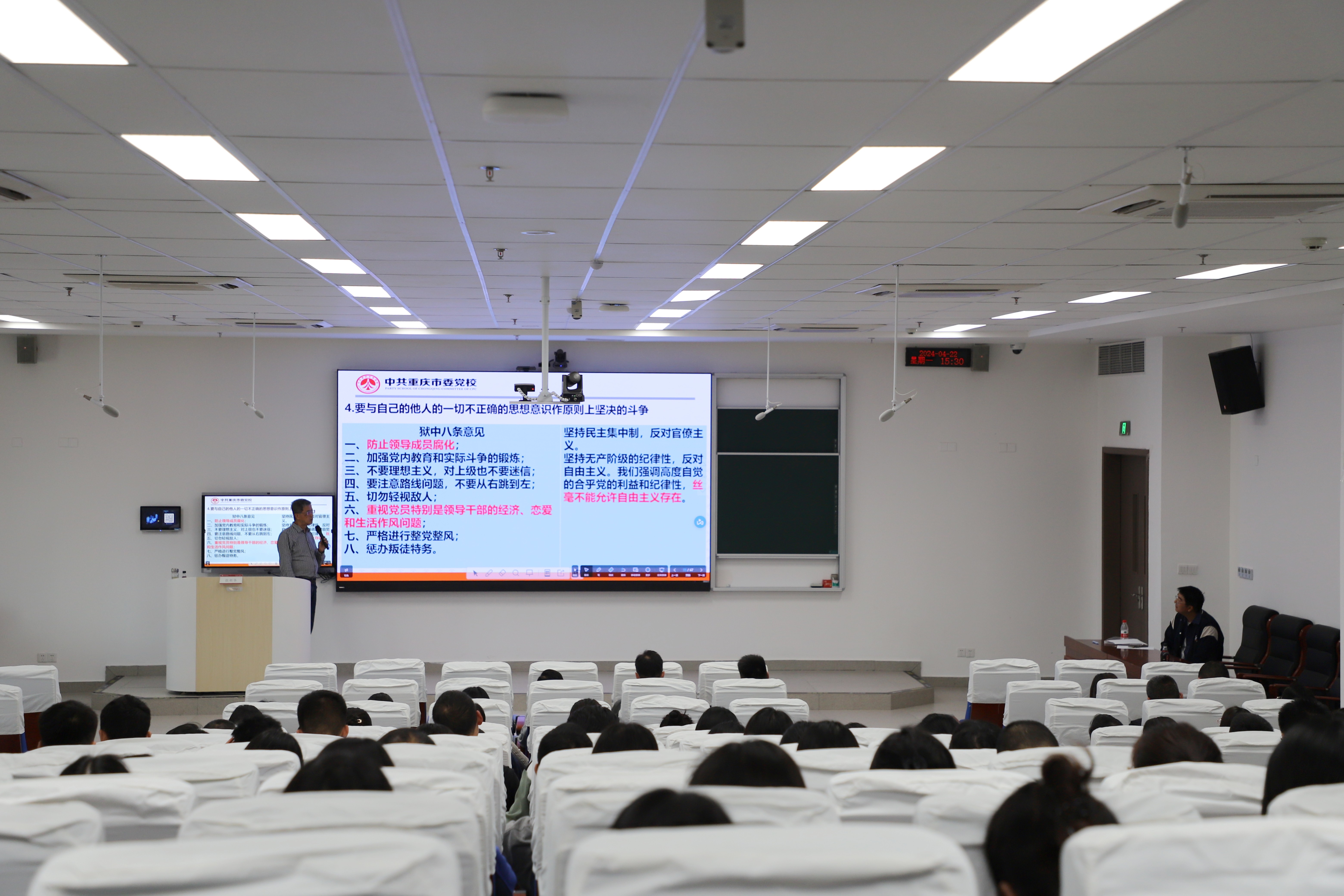 4月22日,bat365举办第二期“三栖名师”讲堂,特邀中共重庆市委党校张新华教授作《中国共产党人的一面不朽旗帜 ——周恩来〈我的修养要则〉解读》主题讲授。学院300余名教职工现场听讲。