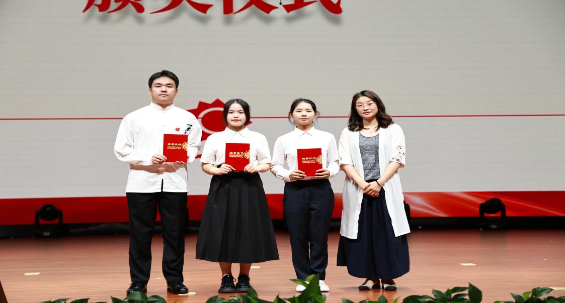 ▲中医学院辅导员李霜、石丹老师为优秀奖班级颁奖