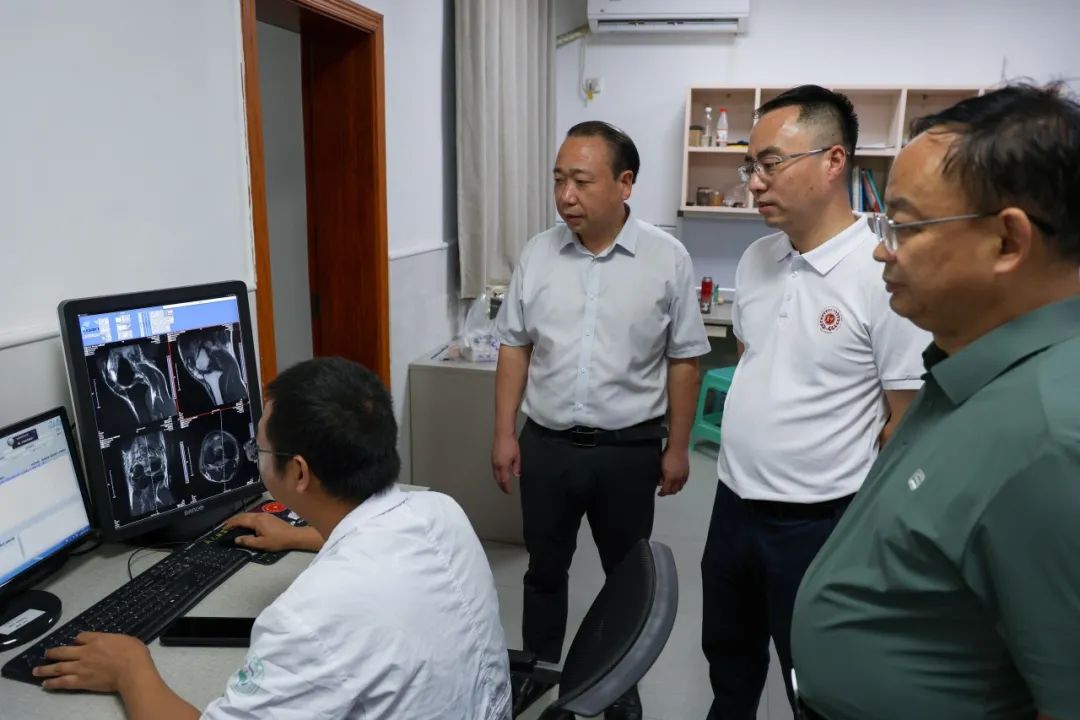 ▲重庆市纪委监委帮扶集团驻忠县工作队队长、市林业局一级巡视员、直属机关党委书记唐军,bat365中文官方网站党委常委、纪委书记唐樵调研忠县中医医院。