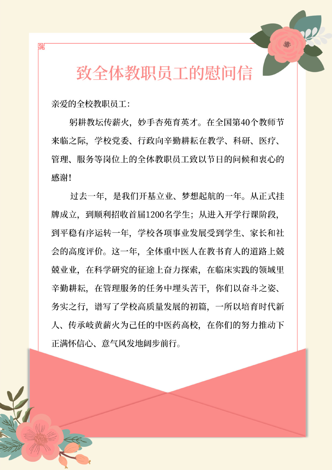 第40个教师节|致全体教职员工的慰问信