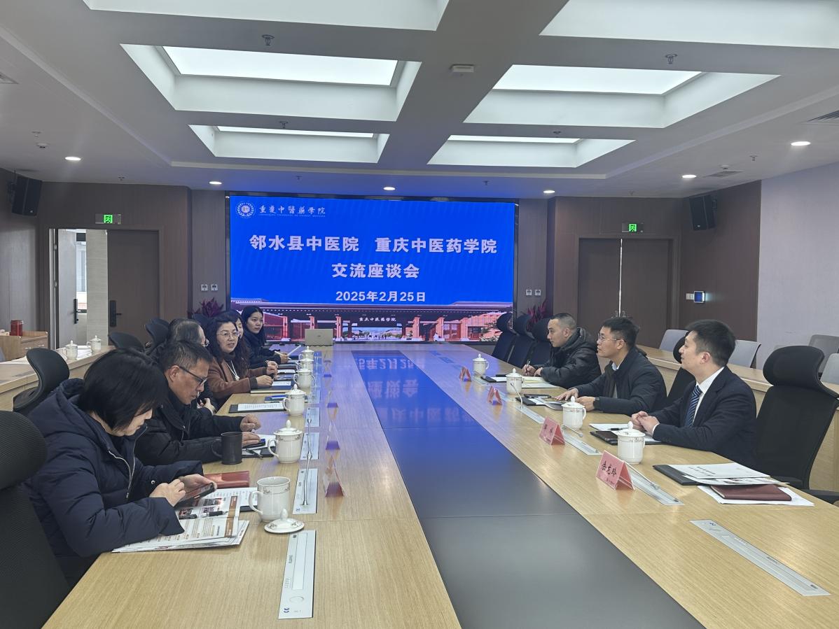2月25日,邻水县中医院院长余志清一行到bat365调研。学院副院长林治华接待陪同,教务处、科研处、继续教育学院等部门相关负责人参加交流座谈。