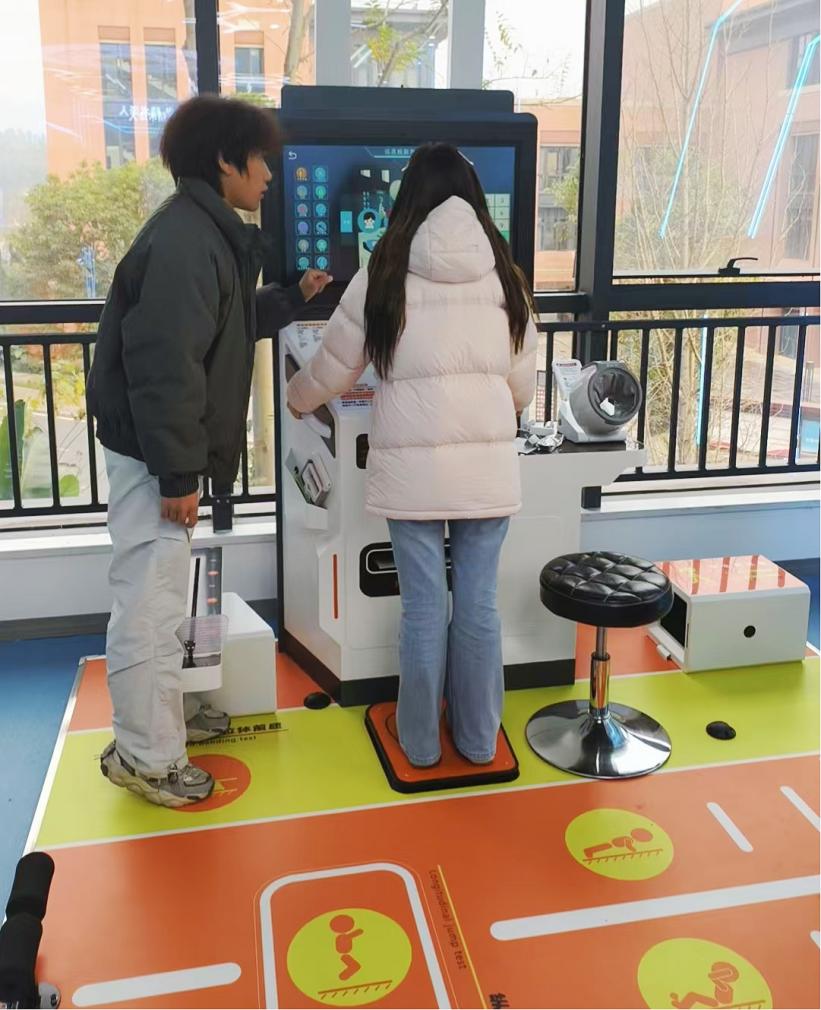 ▲代表团近距离观察体验中医舌面相诊断仪等实训设备,亲身感受理论与实践深度融合的教学模式